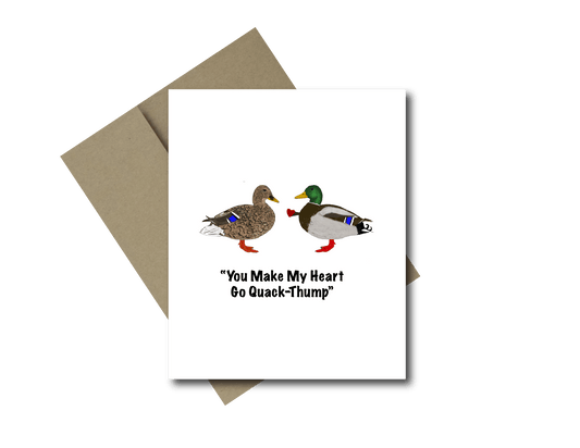 Valentines Card – You make my heart go quack thump Mallard Valentine Greeting Card
