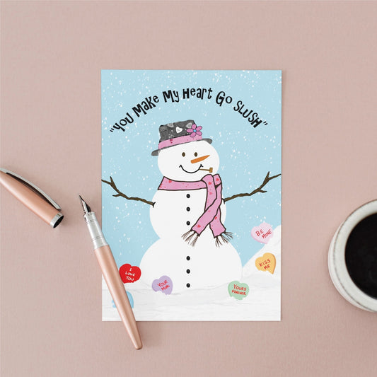 Valentines Card – You Make My Heart Go Slush – Snowman Valentine Greeting Card