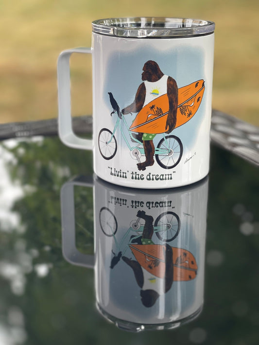 Bigfoot Surf Camp Mug – 12oz Aluminum with Lid | Living the Dream PNW Mug