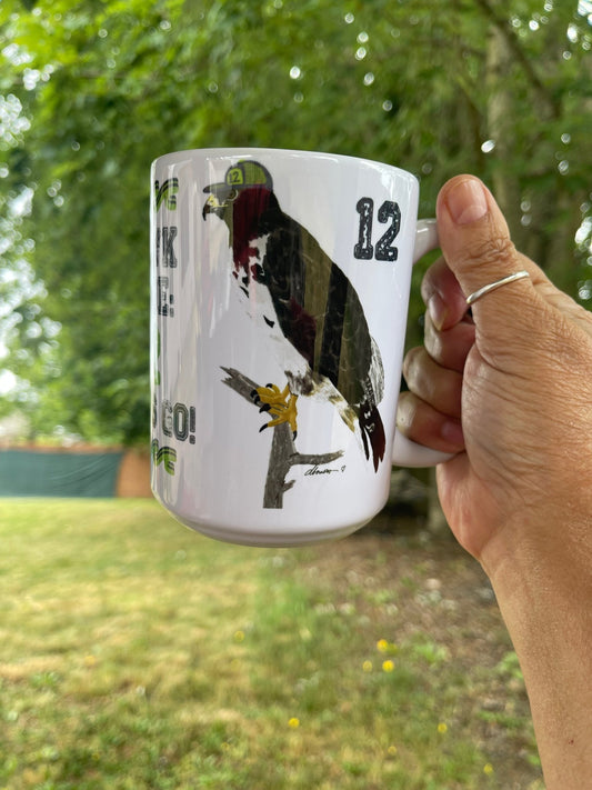 Go Hawks Mug – 15oz Coffee Cup with Hawk and 12 Hat – PNW Fan Gift
