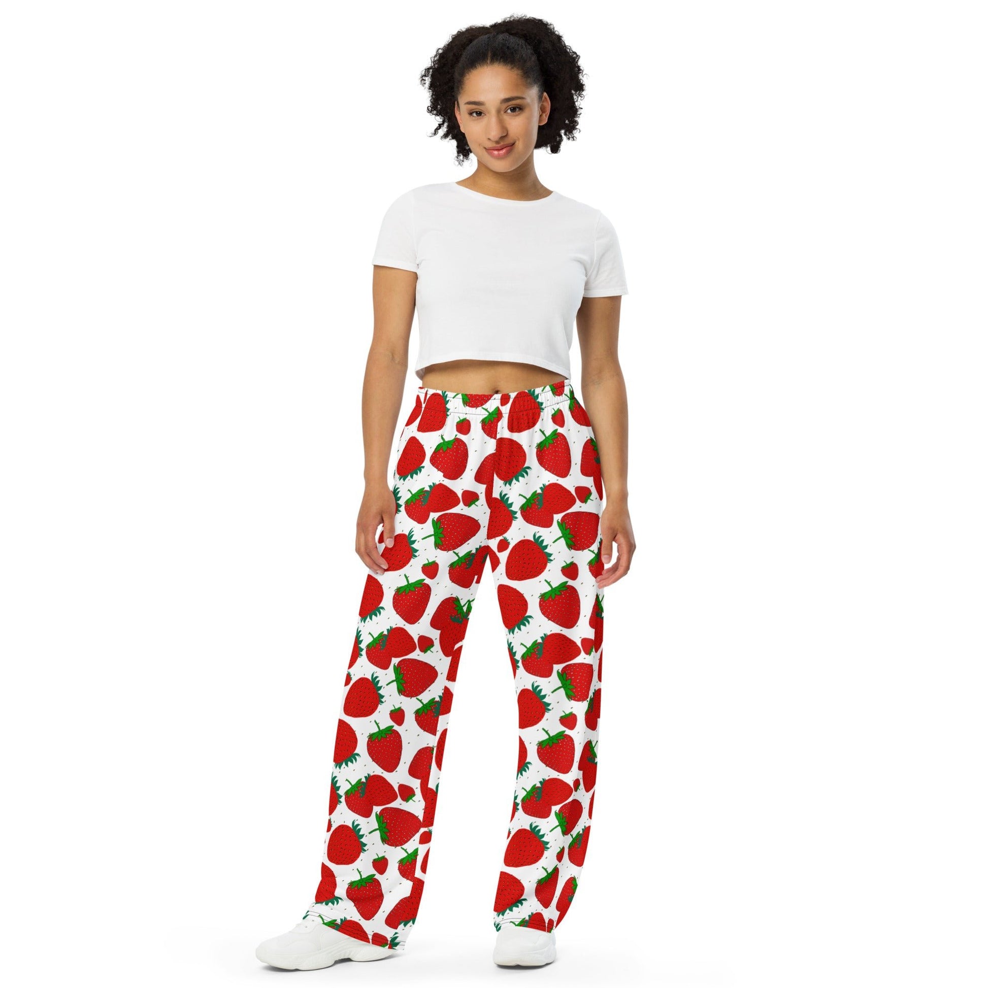 Fallen Strawberries Pajama Pants - Unisex wide-leg pants