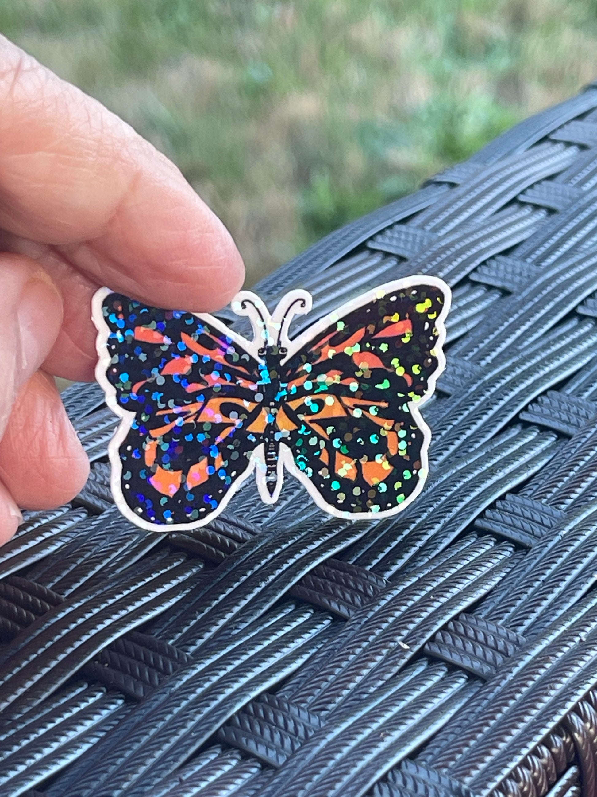 Crafted from high-quality, waterproof vinyl, it’s tough enough for water bottles, laptops, journals, or any surface that could use a colorful touch of whimsy. The rainbow glitter effect shifts beautifully in the light, making this butterfly a true eye-catcher.